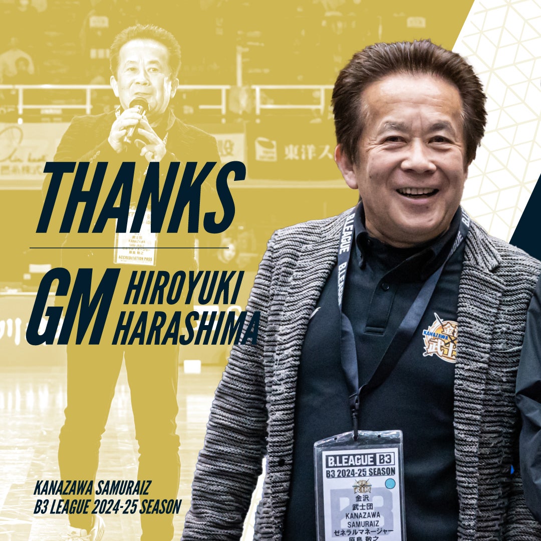 【 お知らせ 】原島敬之ゼネラルマネージャー契約満了のお知らせ