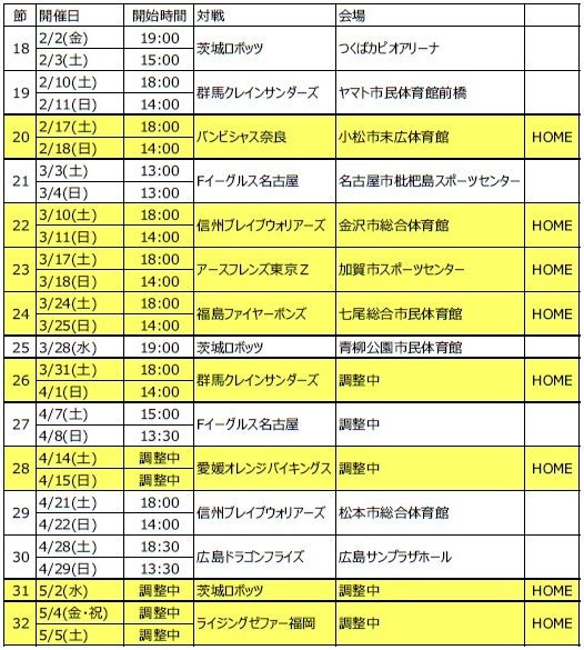 金沢武士団・2017-18シーズン後半戦の試合開始時間決定のお知らせ