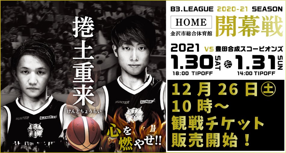 【12/26(土)10時より】ホームゲーム観戦チケット(1~2節開催試合分)販売開始のお知らせ
