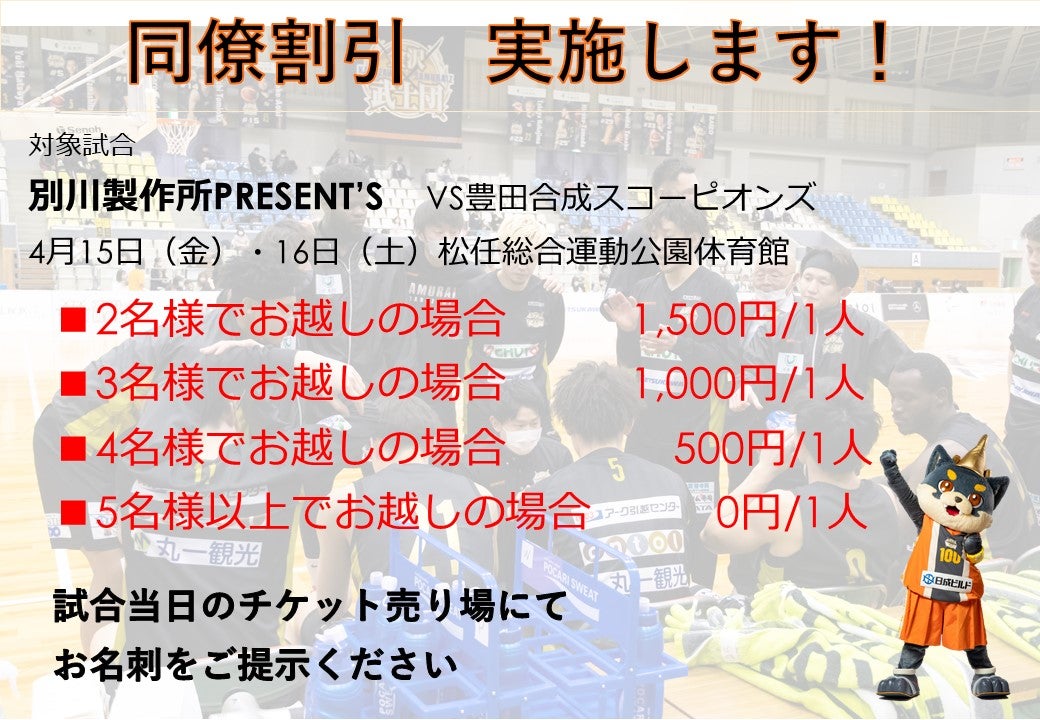 【4月15日(金)16日(土)】特別チケット企画 同僚割引実施のお知らせ