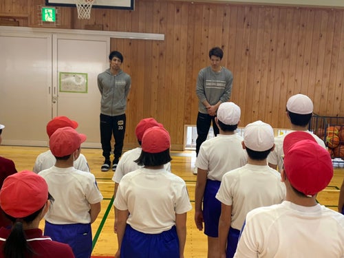 金沢武士団では、石川県と県内トップスポーツチームとの包括連携協定に基づき、金沢武士団のスポーツ教室が、宝達志水町立宝達小学校で開催され、与那嶺翼選手、木田貴明選手が参加しました。