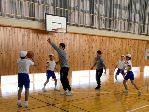スポーツ教室では、ボールハンドリング、ミニゲームを行い、その後には職業講話をしました。