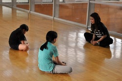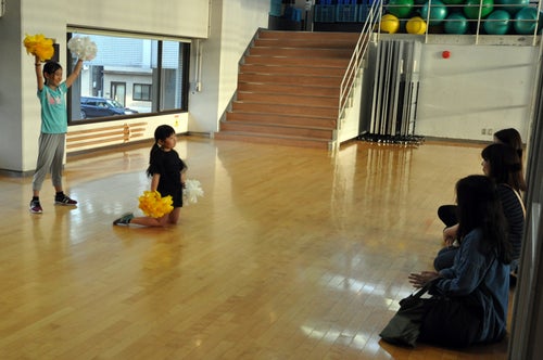 体験会では、ウォーミングアップ、ストレッチで体を温め、アーム練習、振り入れをし、最後は保護者の皆さまの前で発表を行いました。