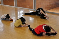 ・あいさつ・ウォーミングアップ・ストレッチ・アーム練習・振り入れ・発表
