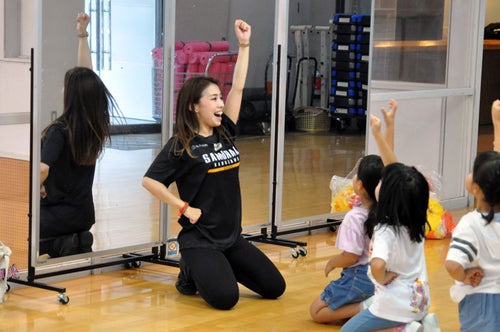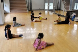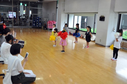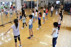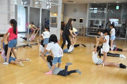今回の体験会には、キッズクラス7名、ジュニアクラス17名と多くの方に参加いただき、ウォーミングアップ、アーム練習、振り入れをし、最後は保護者の皆さまの前で発表を行いました。