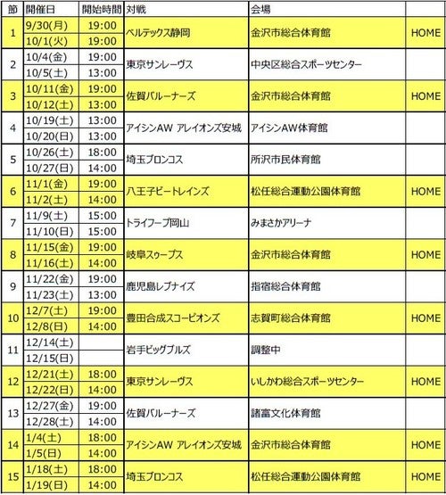 金沢武士団では、2019-20シーズン開幕戦vsベルテックス静岡戦の、日程・試合会場が以下の通りに決定いたしましたのでお知らせいたします。