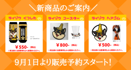 金沢武士団では、9月1日(日)0:00より、下記の新グッズの予約受付をオフィシャルオンラインショップにて開始いたします。