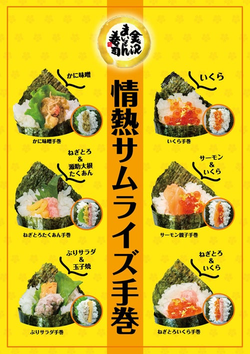 今回の「金沢まいもん寿司」ブースでは「情熱サムライズ手巻」を販売いたします。