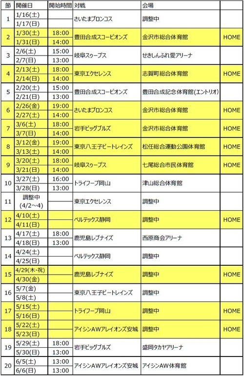 金沢武士団では、2020-21シーズンの一部試合会場、並びに試合開始時間が決定いたしましたのでお知らせいたします。