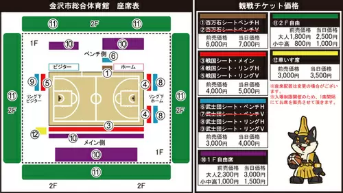 ![]() 金沢武士団オンラインチケット ※指定席、自由席全券種販売します。 ※座席指定が可能です。 |