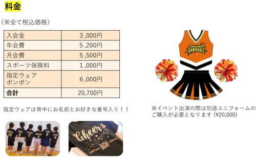 ◎その他、チアダンスアカデミー在籍の生徒は、金沢武士団ファンクラブ(¥1,000相当)の特典が受けられます。