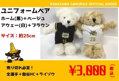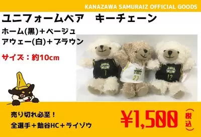 ・「ユニフォームベア」「ユニフォームベア・キーチェーン」は、一部の選手が完売となっております。予めご了承ください。