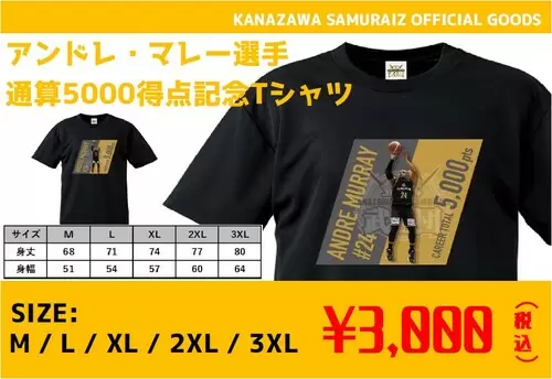 ・アンドレマレー選手通算5000得点記念Tシャツ【受注販売】3,000円(税込)
