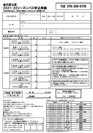 2:申込用紙を「金沢武士団チケット係」まで郵送・FAXまたはメールにてお送りください。