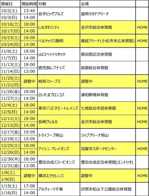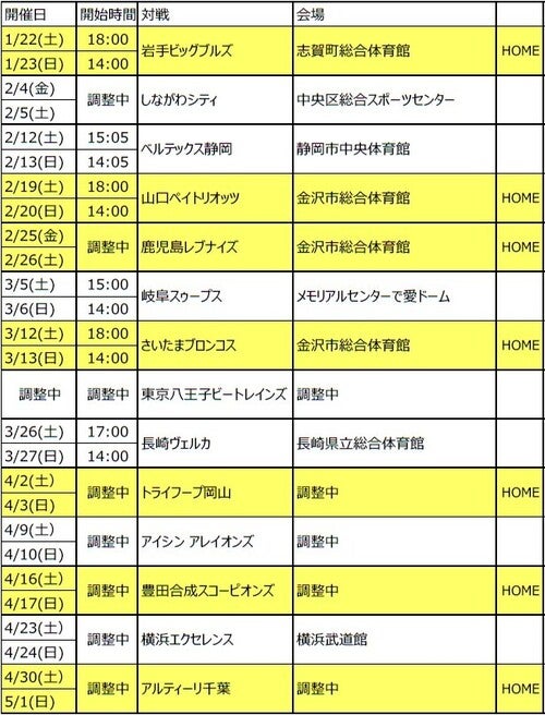 金沢武士団では、2021-22シーズンの一部試合会場、並びに試合開始時間が決定いたしましたのでお知らせいたします。