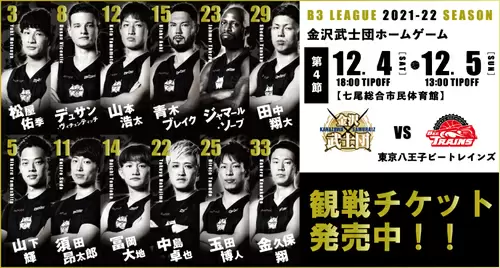 対戦 | 金沢武士団 vs. 東京八王子ビートレインズ | |