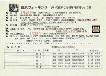 【イベント情報】5月29日(日)「健康ウォーキング 歩いて健康と地域を再発見しよう‼」選手参加のお知らせ