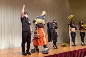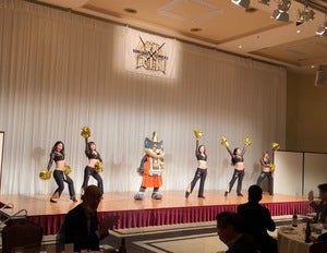 金沢武士団チアリーダーとライゾウのパフォーマンスで感謝の会を盛り上げました。