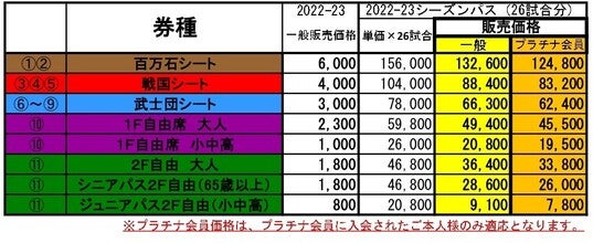 金沢武士団では、2022-23シーズンのホームゲーム全26試合を対象としたシーズンパスを、