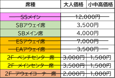 ※SSメイン席・ESアウェイ席・EAアウェイ席・2Fベンチセンター席・2Fメインセンター席・2Fアウェイコーナー席の金沢武士団販売分は終了致しました。