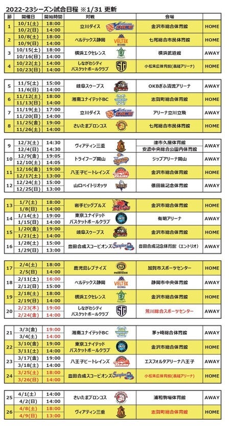 この度、B3リーグ2022-23シーズン第24節 豊田合成スコーピオンズ戦と第26節 ヴィアティン三重戦の日程及び、試合会場、試合開始時刻が決定致しましたのでお知らせいたします。