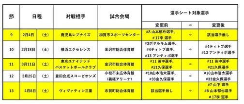 金沢武士団では、現在実施している『選手シート』について、選手のコンデション等を考慮し、誠に勝手ながら一部日程、及び対象選手を下記の通り変更させていただくことになりました。