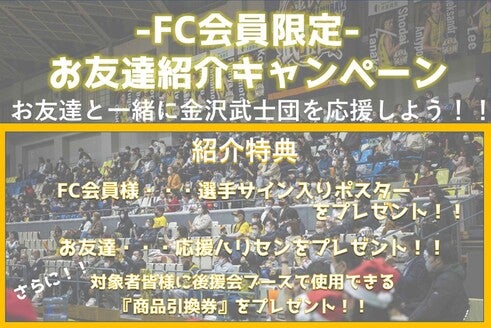 「お友達紹介キャンペーン」は、ファンクラブ会員様が、お友達を金沢武士団の試合に招待できるチャンスです☆