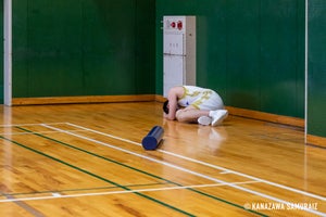 2つ目の障害は、練習や試合でお世話になったストレッチポールを使ってぐるぐる10回❕