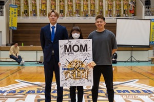 ファン感謝祭では、#8山本郁也選手兼コーチと斎藤瑛アソシエイトヘッドコーチの司会進行で行われ、選手は2チームに分かれブースターさんの力を借りて勝利をめざし、楽しみました。