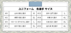 (ご参考)選手たちが実際に着用しているサイズは以下となります。