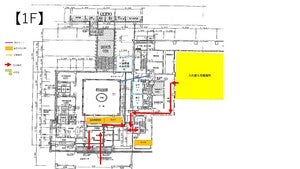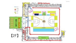 試合ごとに入れ替えがあることから、1階小体育館を観客待機場所として設けております。