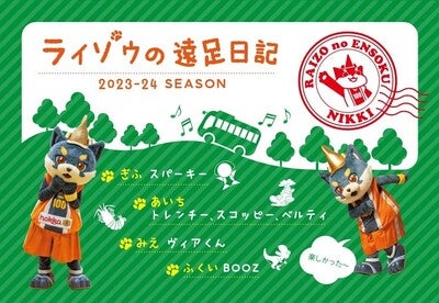 3/23(土) 豊田合成スコーピオンズ戦より、ライゾウのマスコットオブザイヤー2023-24参加を記念して、今シーズンライゾウが遠足先で出会った友達のみんなと撮影した写真を「ライゾウの遠足日記 ポストカード5枚セット」として販売することとなりましたので、お知らせいたします。