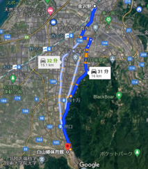 金沢駅からIR石川鉄道線で西金沢駅へ(約3分)、新西金沢駅から 北陸鉄道石川線 『鶴来行』に乗り換え鶴来駅にて降車(約29分)、その後徒歩14分
