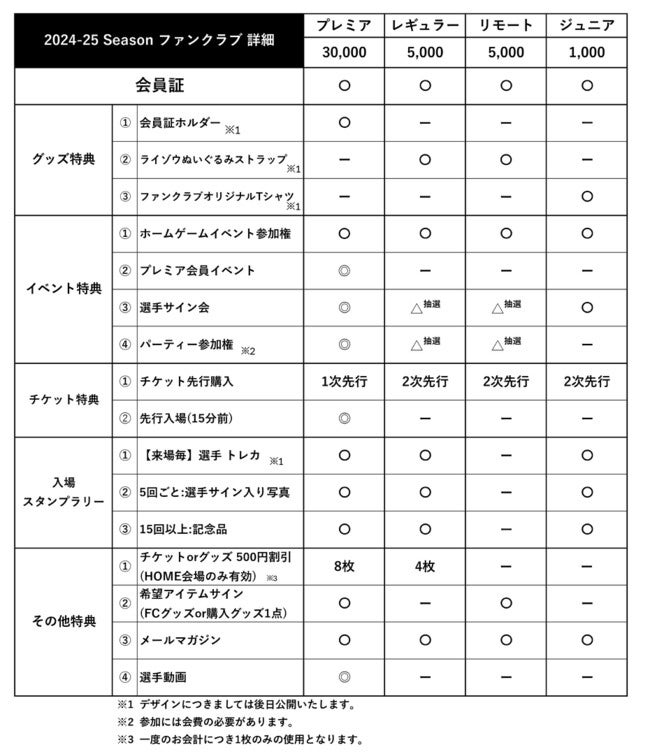 【9月1日 12:30~】2024-25シーズンファンクラブ会員受付のお知らせ