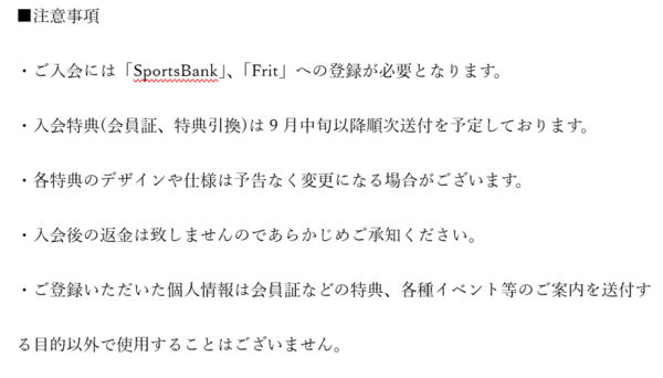 今シーズンのファンクラブへの入会には「SportsBank」、「Frit」への登録が必要となります。