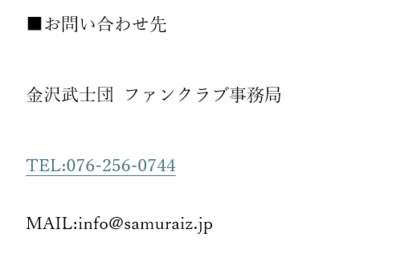 日頃より金沢武士団を応援していただき誠にありがとうございます。