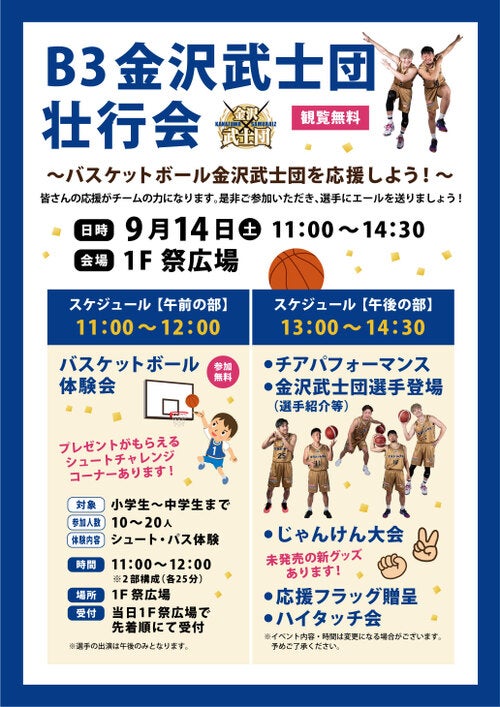 9月14日(土)にイオンモール新小松にて、「金沢武士団 壮行会」を実施いたします!