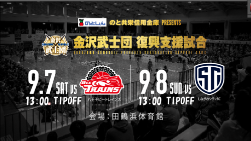 金沢武士団では、B3.LEAGUE2024-25シーズン開幕に向け、2024年9月7日(土)・8日(日)の2日間、田鶴浜体育館にて復興支援試合(プレシーズンマッチ)を開催することが決定いたしましたのでお知らせいたします。