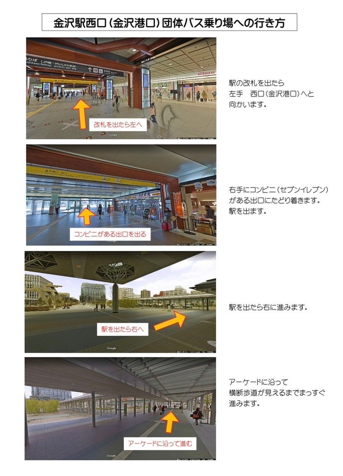 【 金沢駅西口( 金沢港口 )団体バス乗り場への行き方 】