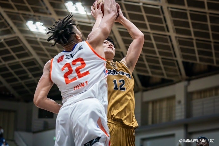 序盤は、第1Q同様にお互いに譲らない展開となる。その中で、#21久保拓斗が着実に点を重ね、差をジリジリと詰める。オフィシャルタイムアウトまで常に1点を争う激しい展開が繰り広げられる。しかし、新潟にインサイドでの得点を許し、7点差になったところで松藤HCがタイムアウト。さらに自分たちのミスから得点を与えてしまい、点差が開いて42-55で前半が終了。