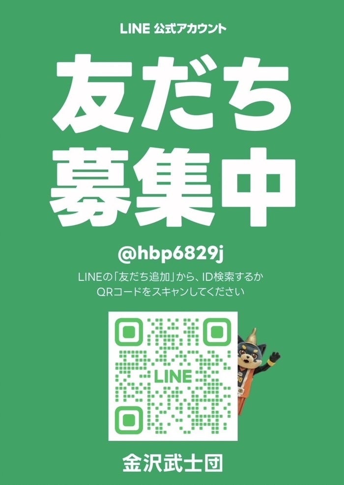 金沢武士団公式LINEを友達追加 → Lメンバーズへの登録( アンケートに回答 )