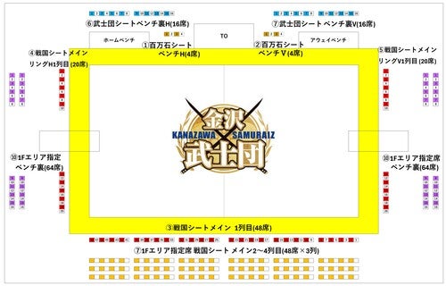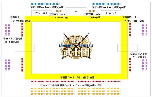ベンチ裏席、コートサイド2列目以降の座席を1F自由席からエリア指定席に変更いたしました。