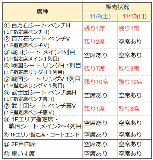 ⬛︎ 第7節のチケット販売状況( 11/7(木)時点 )