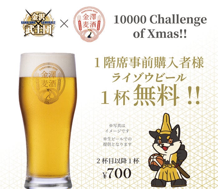 そのような中、クラブのB.ONE参戦とチームのホーム連勝継続を応援するべく、事前にチケットをご購入いただいている方に恩返しをしたく、ライゾウビール1杯無料キャンペーンを再度実施することといたしました。