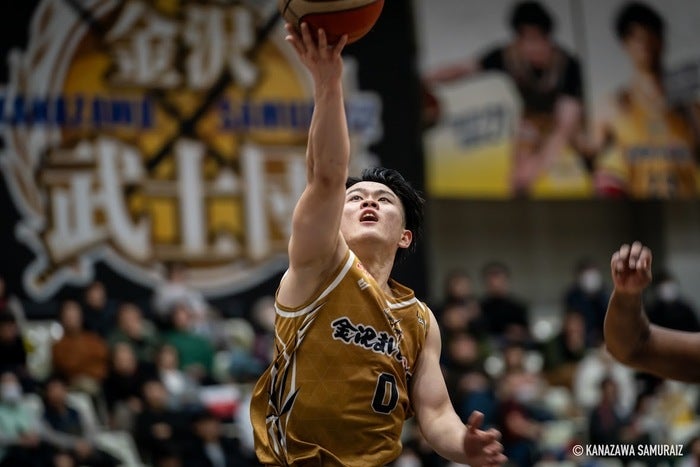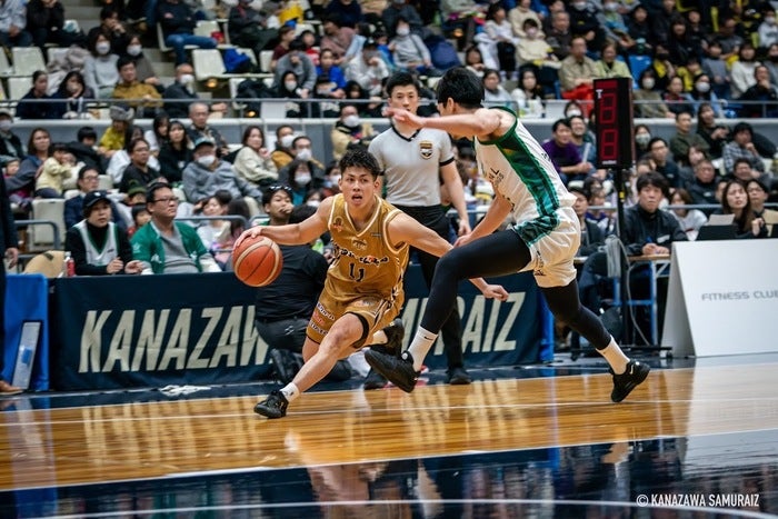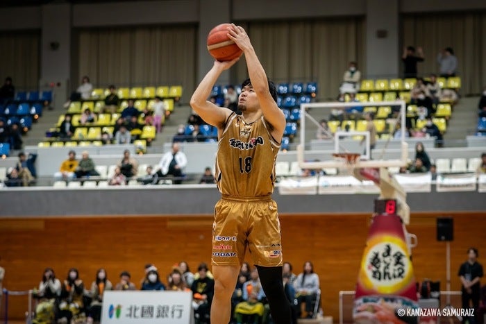 出だしから相手に7-0のランを許してしまう。第2Q最初の得点を奪ったのは#30髙橋幸大。立て続けに3Pを決める。#18市橋歩、#7スティーブン・グリーンが応えるように3Pを沈める。勢いが増したサムライズは一気に点差を縮めて第2Qが終了。37-48で11点のビハインド。