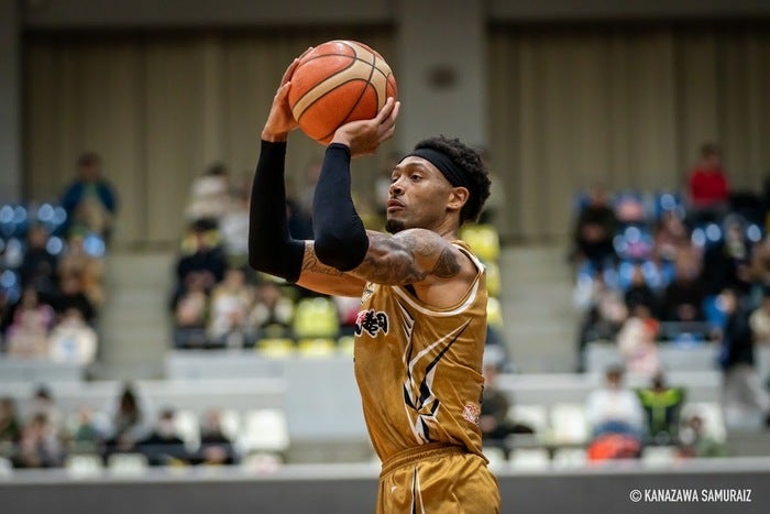 追いつきたいサムライズは、ディフェンスの強度を一段と上げる。一進一退の展開が続く中、#42ケビン・コッツァーがゴール下で存在感を発揮。中盤以降は我慢の展開が再び訪れる。#23國分大輔のバスケットボールカウントで追いすがるも、点差を広げられ57-76で第3Qが終了。