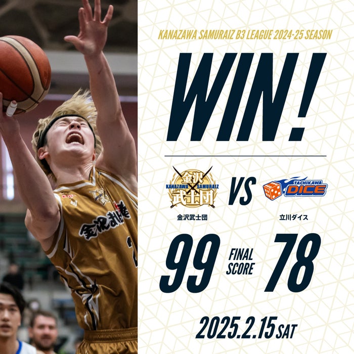 サムライズの勢いは止まらない、ディフェンスから走る展開や、外からに3Pと的を絞らせない。さらにインサイドでは#42ケビン・コッツァーのリバウンドシュートでオフィシャルタイムアウト突入。タイムアウト明けも#2東野恒紀を筆頭に攻守共に圧倒。99-78でサムライズが勝利。