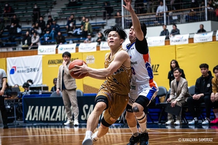 お互いに固い出だしとなるも、要所で#42ケビン・コッツァーがディフェンスリバウンドを抑え、インサイドを守り抜く。それに応えるように#2東野恒紀のバスケットボールカウントなどで立川にタイムアウトを取らせる・タイムアウト後は、第1Q同様、取っては取られてを繰り返す。サムライズはフリースローなどで加点をし、第3Q終了。