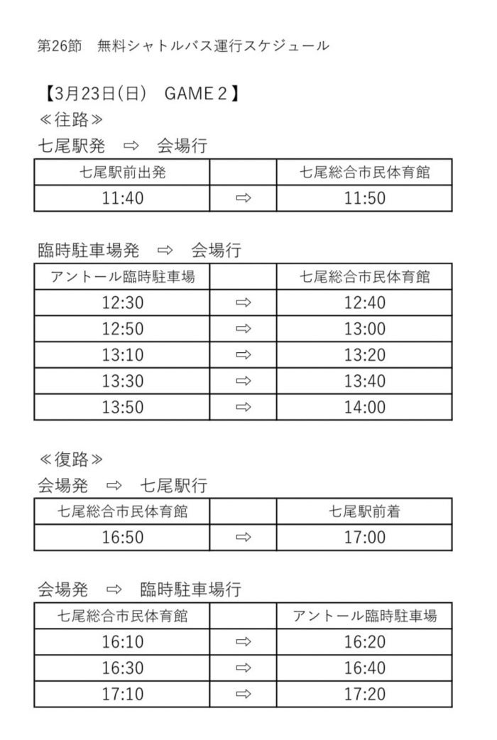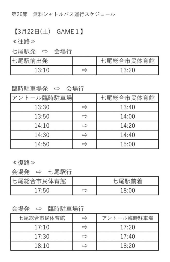 ※ 試合終了後の時間は運行しておりませんので、お帰りの際は路線バス等、他の交通機関をご利用ください。
