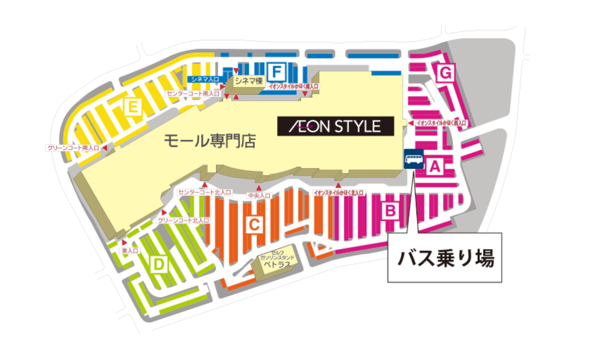 ▶︎ バス乗降場図:A区画 西入口出てすぐ